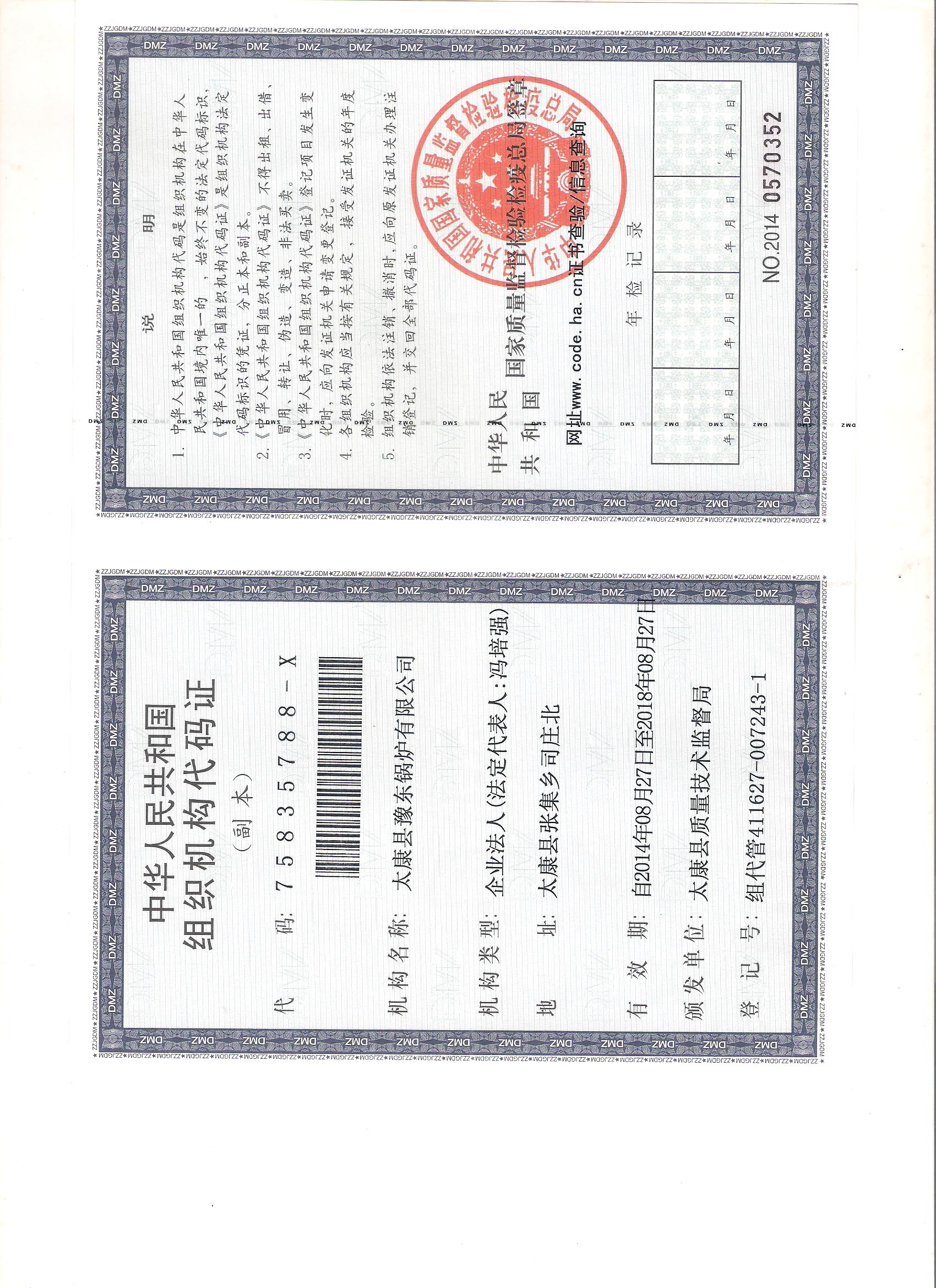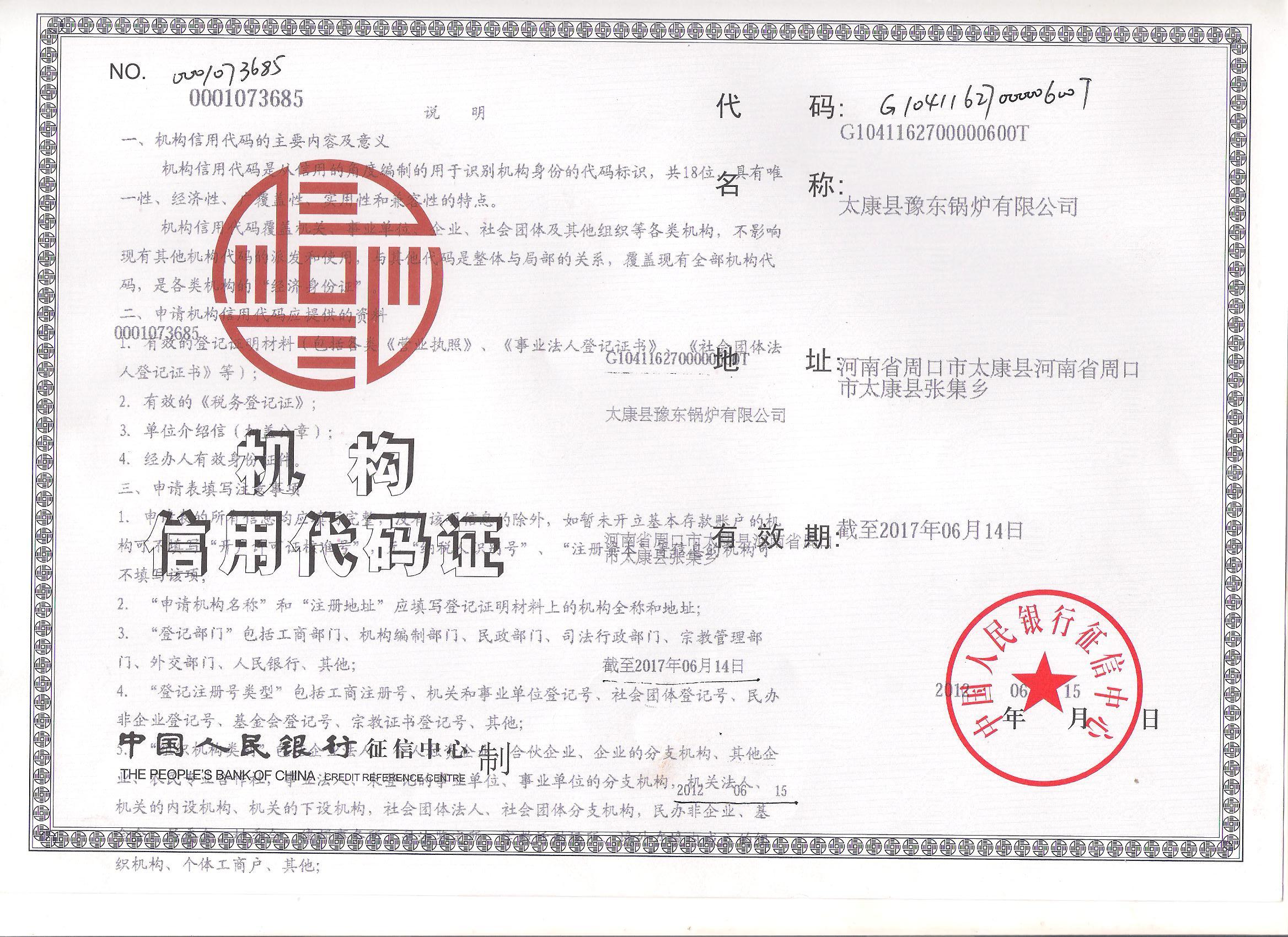 机构信用代码证