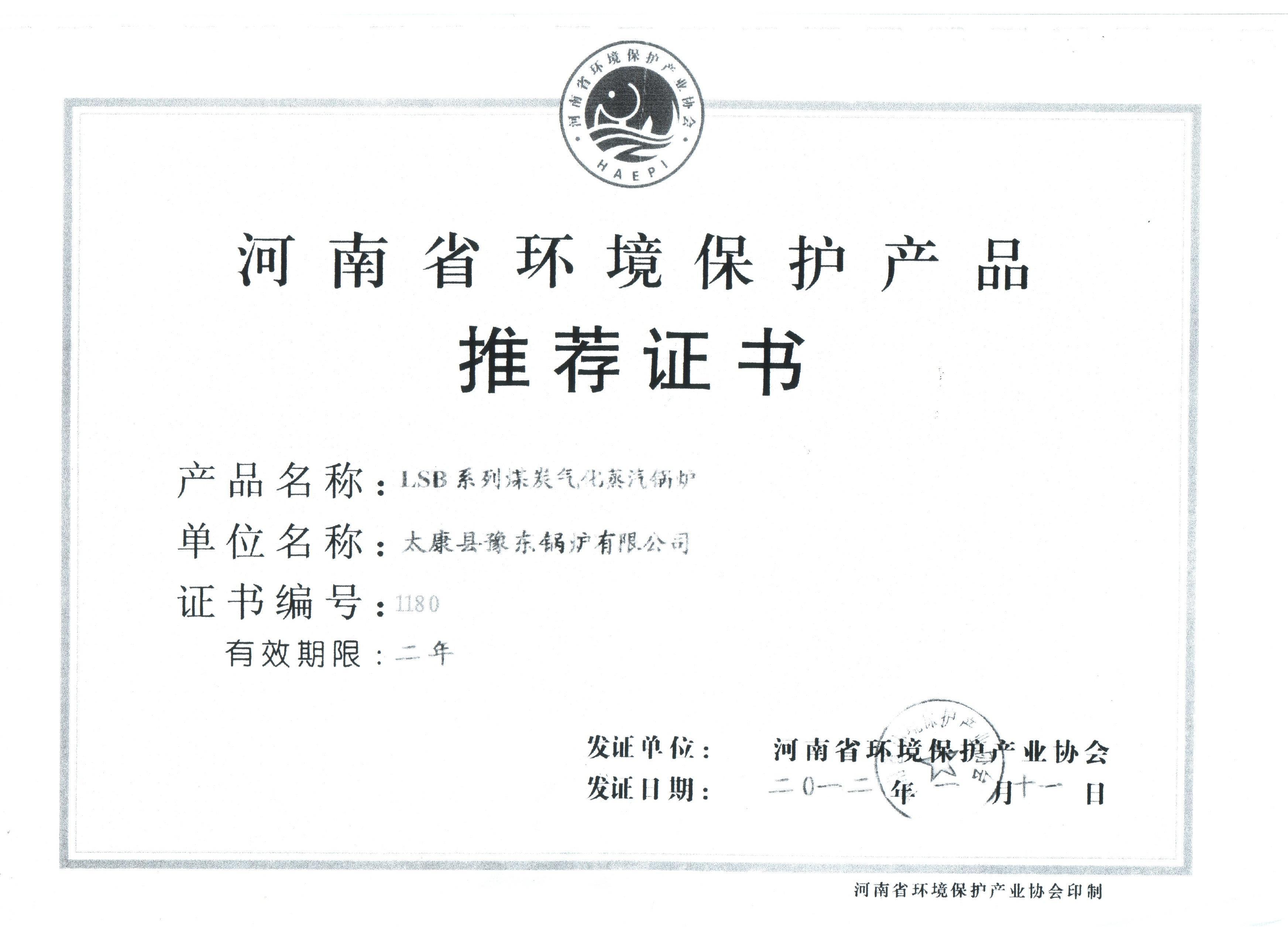 环保推荐证书
